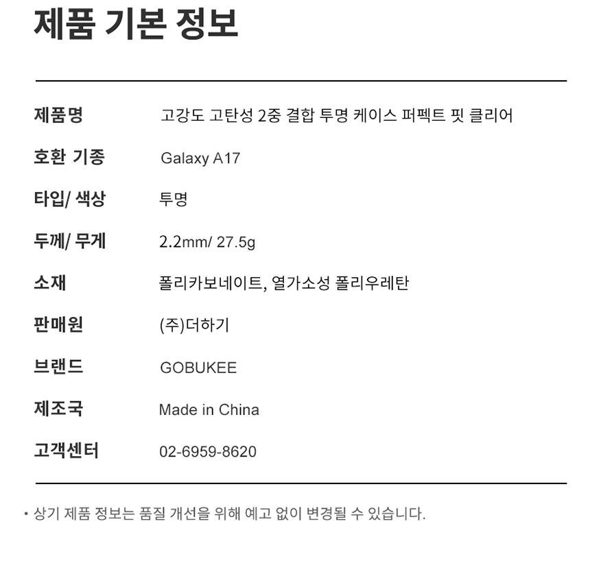 고부기 갤럭시 A17 투명 퍼펙트핏 케이스