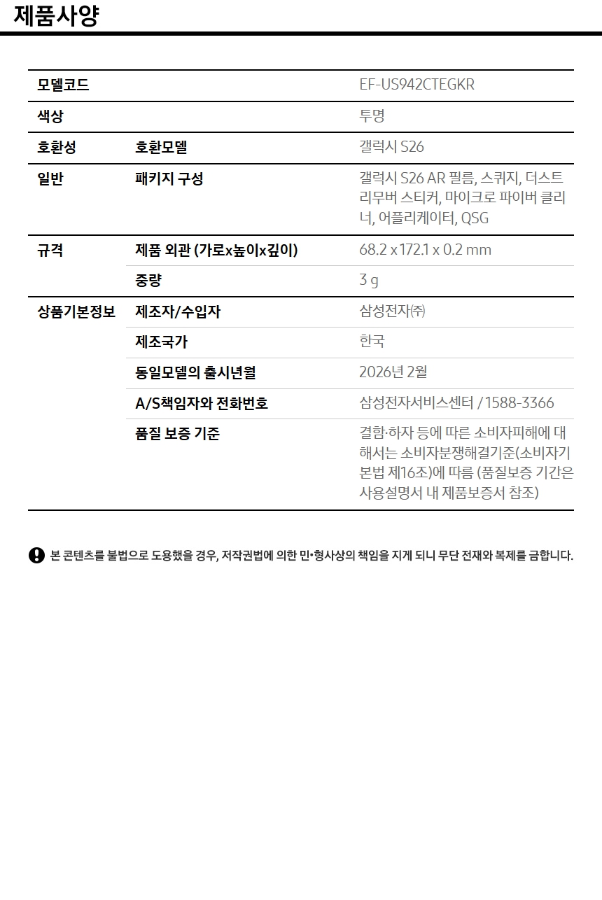 삼성전자(주) 삼성 정품 갤럭시 S26 보호필름