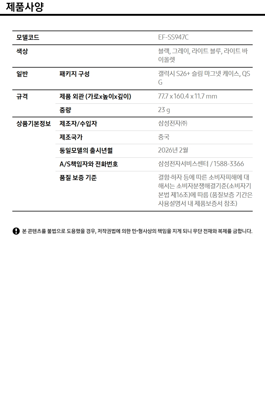 삼성전자(주) 삼성 갤럭시 S26 플러스 마그넷 슬림 케이스