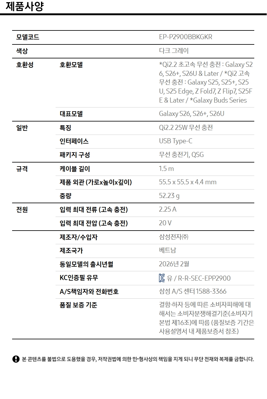 삼성전자(주) 삼성 마그넷 무선 충전기 (25W)