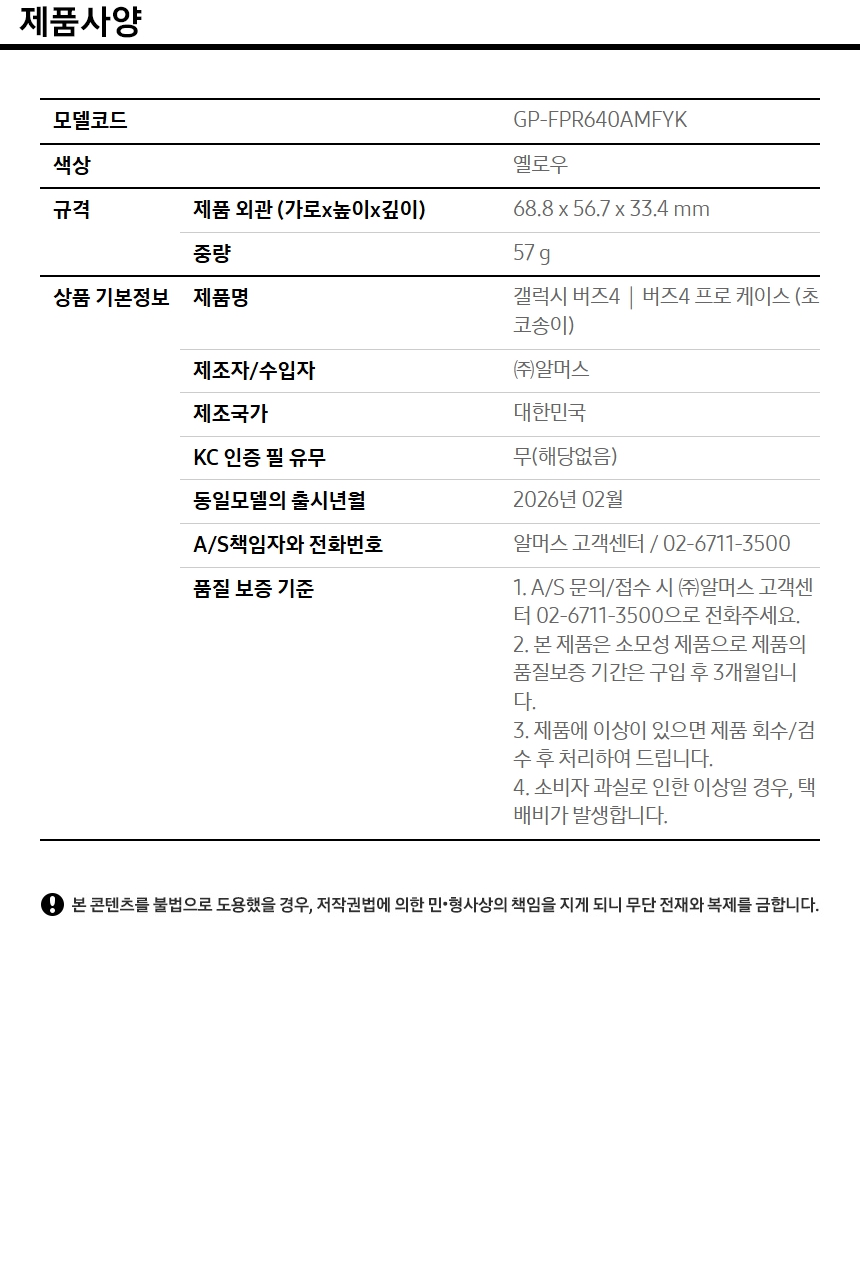 삼성전자(주) 삼성 갤럭시 버즈4 버즈4프로 케이스 오리온 초코송이 케이스