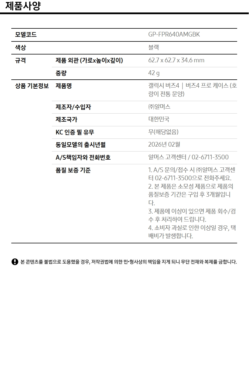 삼성전자(주) 삼성 갤럭시 버즈4 버즈4프로 케이스 호랑이 전통 문양 케이스