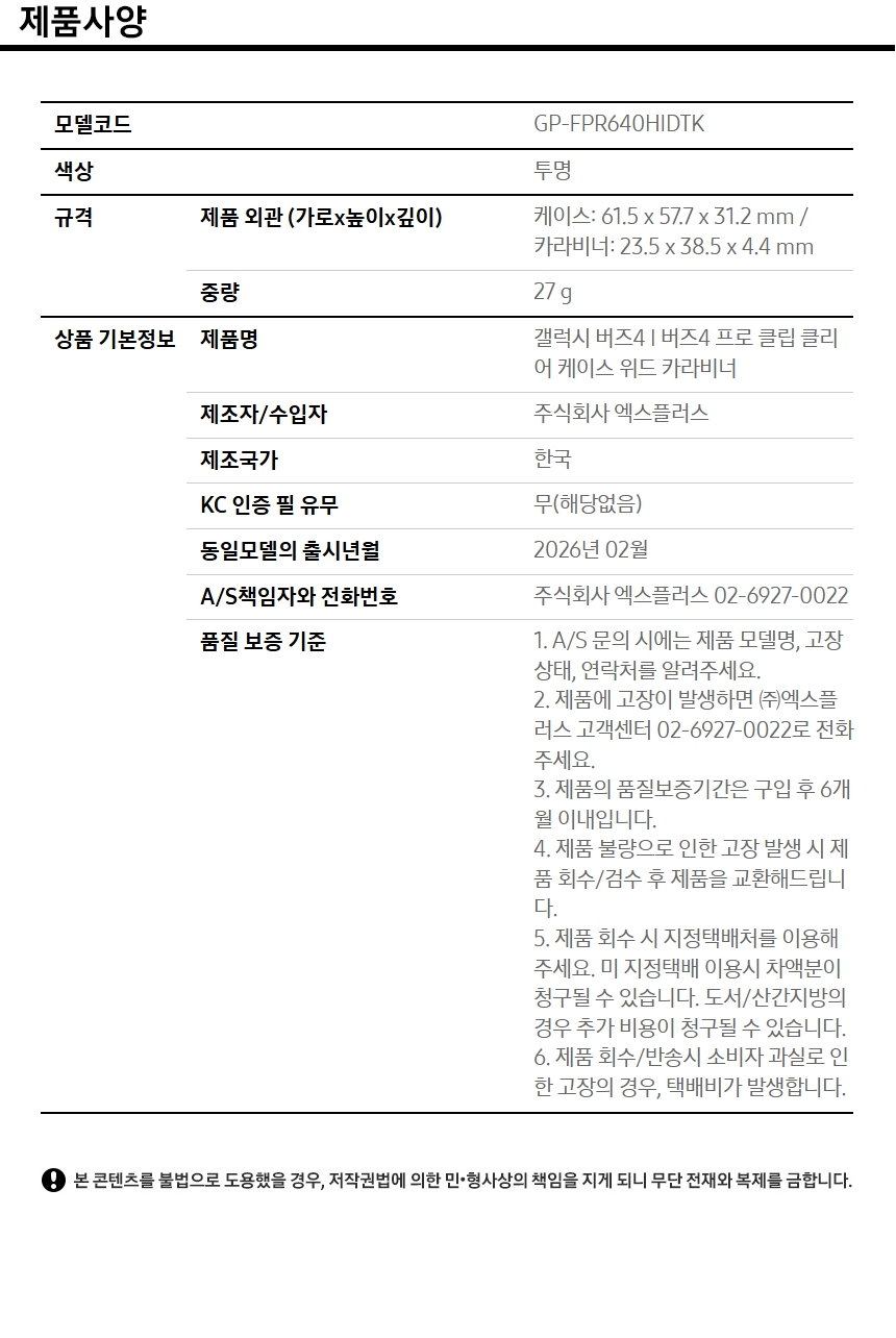 삼성전자(주) 삼성 갤럭시 버즈4 버즈4프로 케이스 카라비너 클립 클리어 케이스