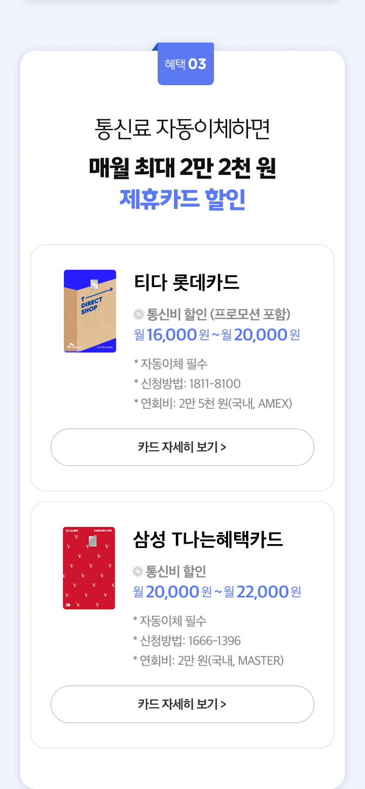- T 다이렉트샵에서 제공하는 휴대폰 관련 각종 할인 쿠폰을 적용하여 신규가입/기기변경하신 경우, 다이렉트 플랜에 가입하실 수 없습니다.