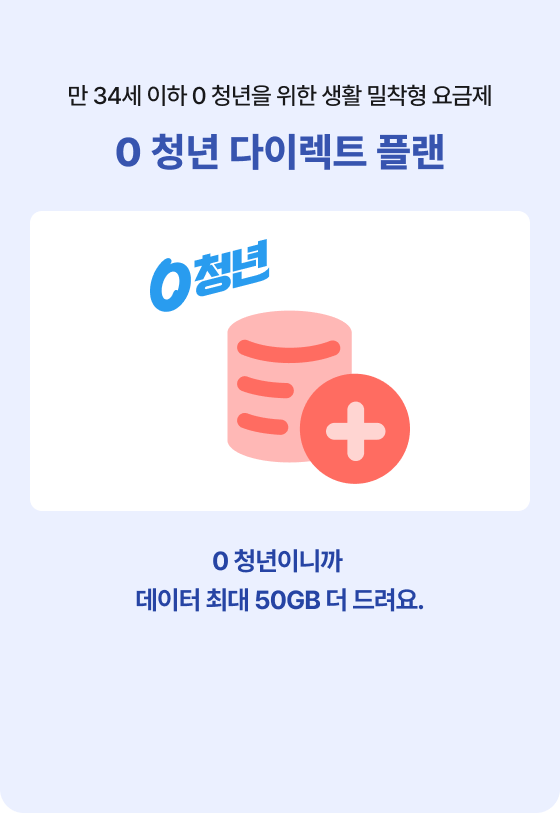 만 34세 이하 0 청년을 위한 생활 밀착형 요금제 0 청년 다이렉트 플랜