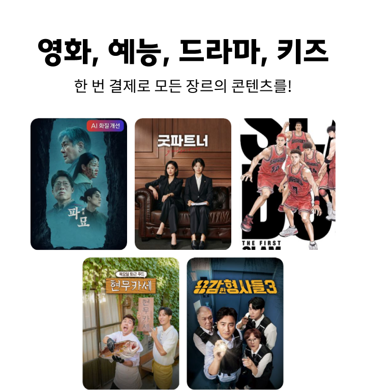 한 번 결제로 모든 장르의 콘텐츠를!