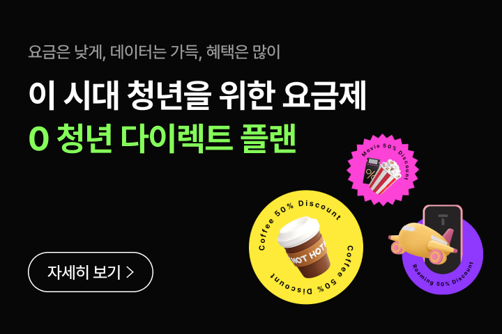 • 0 청년 다이렉트 플랜은 5G 휴대폰을 사용하는 만 34세 이하 고객님만 가입하실 수 있습니다.
