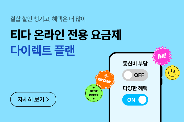 • 다이렉트 플랜, 0 청년 다이렉트 플랜 이용 시 약정 할인(T 지원금약정, 선택약정, 무약정플랜)을 받으실 수 없습니다.