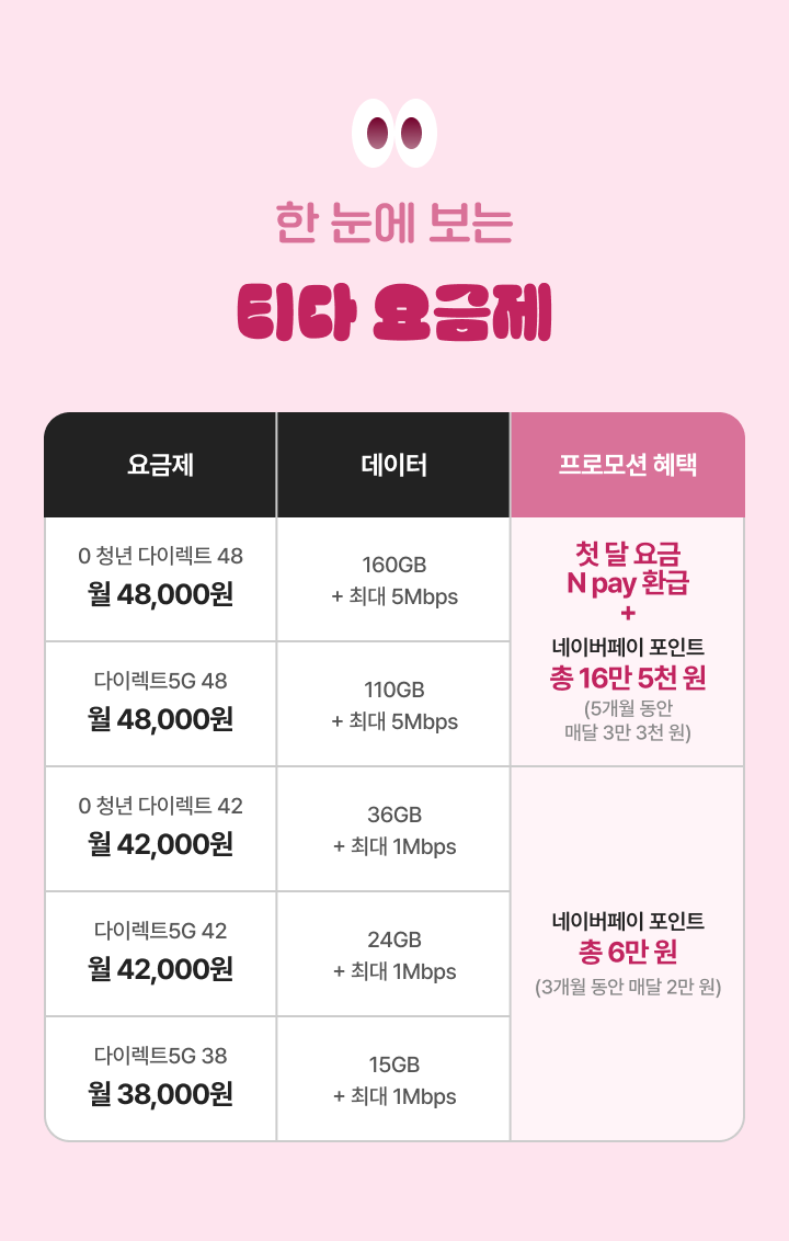 한 눈에 보는 티다 요금제