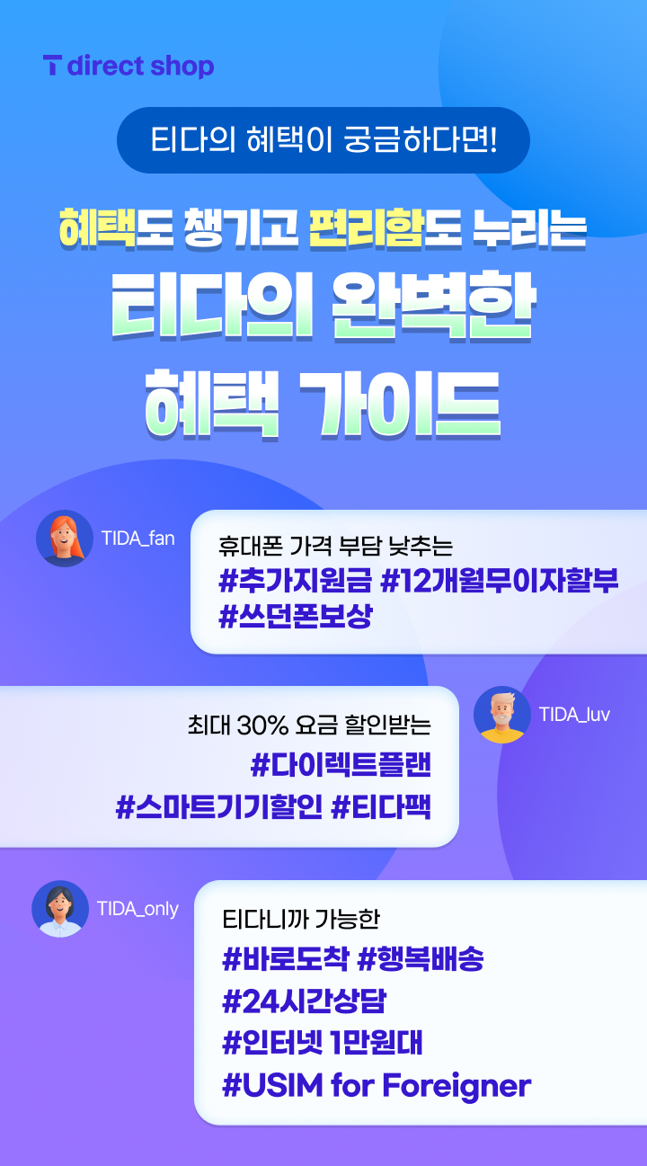 - TIDA_luv : 최대 30% 요금 할인받는 #다이렉트플랜 #스마트기기할인 #티다팩