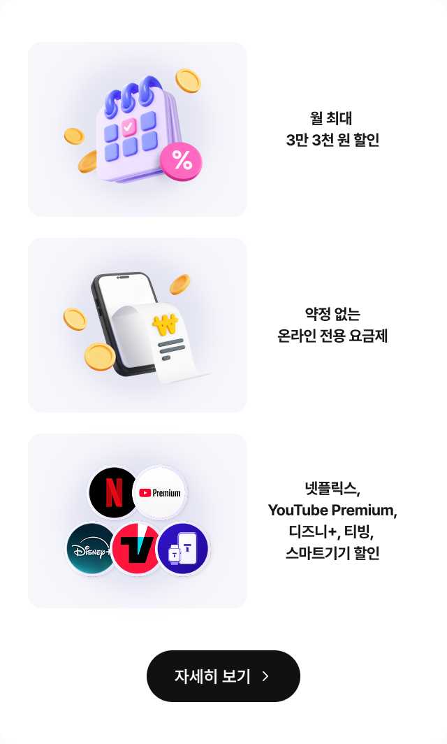 • 월 최대 3만 3천 원 할인