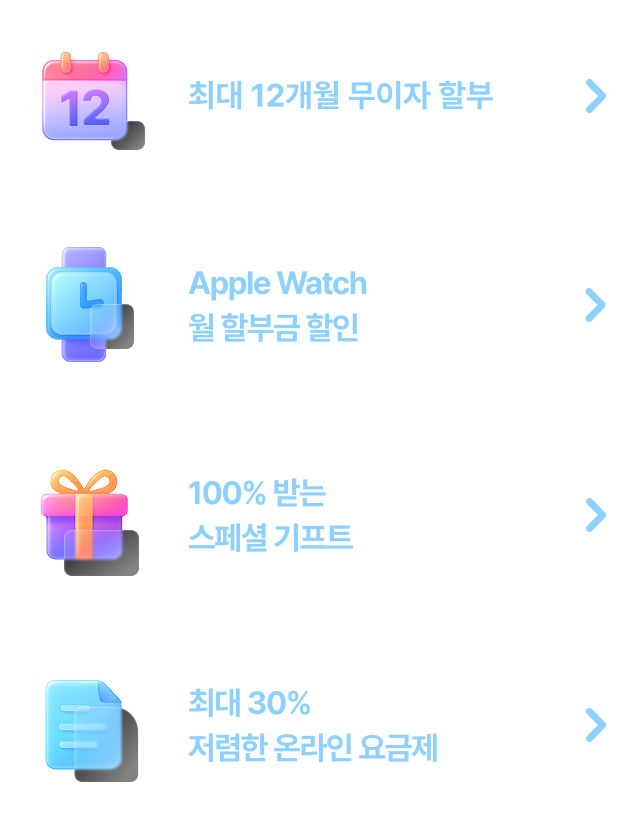 • Apple Watch SE 3 외에 다른 기기를 선택하실 수도 있으며, 기기에 따라 월 할부금이 달라집니다.