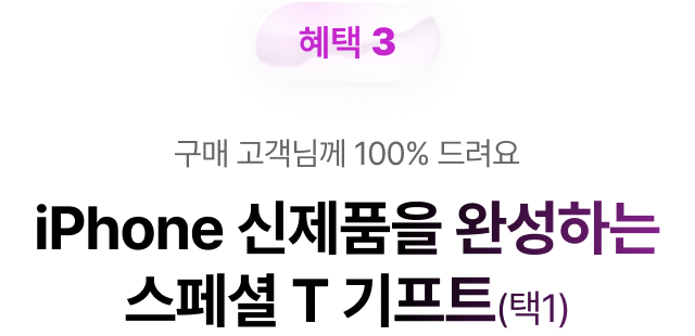 혜택 3 구매 고객님께 100% 드려요 iPhone 신제품을 완성하는 스페셜 T 기프트(택1)