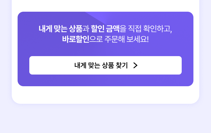 내게 맞는 상품과 할인 금액을 직접 확인하고, 바로할인으로 주문해 보세요!