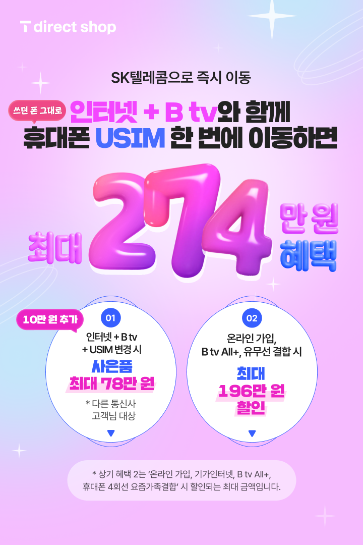 인터넷 + B tv와 함께 쓰던 폰 그대로 휴대폰 USIM 한 번에 이동하면 최대 274만 원 혜택