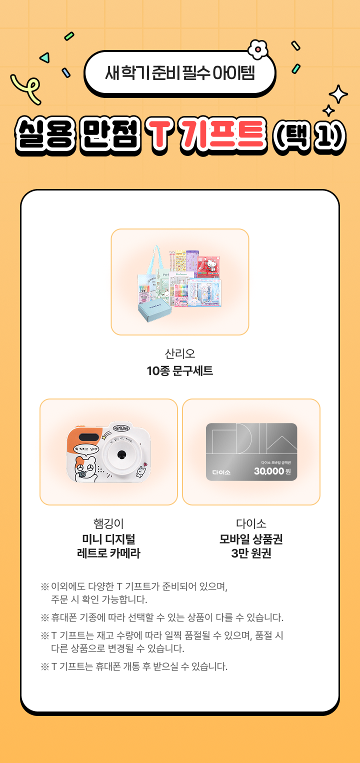 - * 이외에도 다양한 T 기프트가 준비되어 있으며, 주문 시 확인 가능합니다.