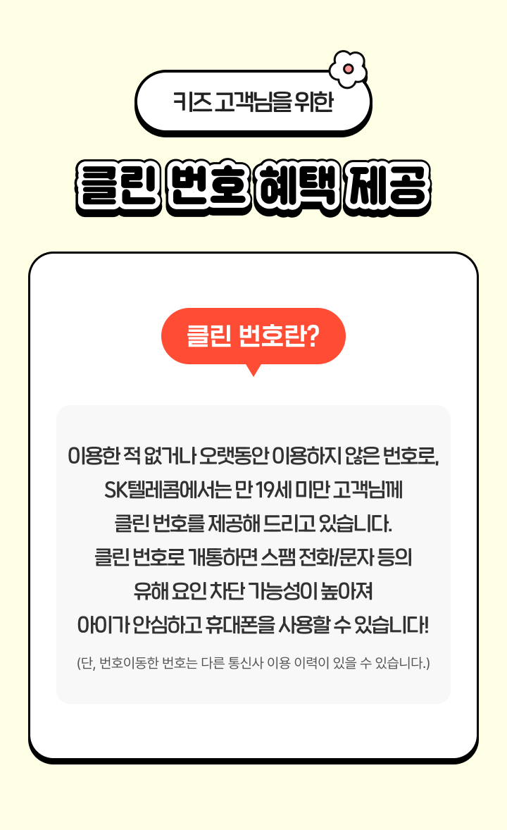 키즈 고객님을 위한 클린 번호 혜택 제공